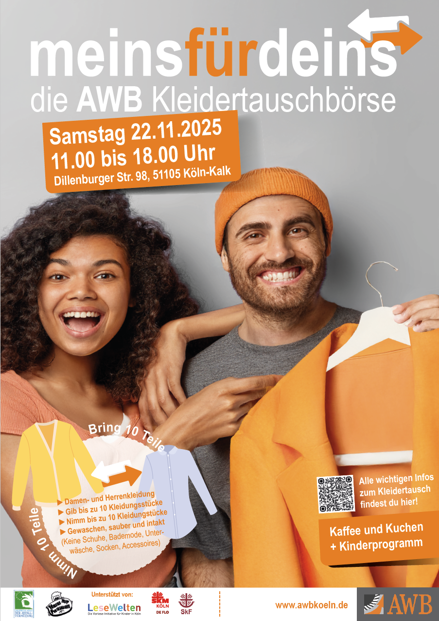 Mach mit bei meinsfürdeins und komm zur AWB Kleidertauschbörse!