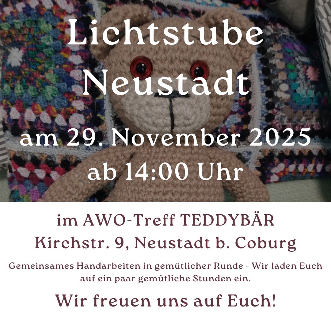 Wir treffen uns ab 14:00 Uhr im AWO-Treff „Teddybär“, Kirchstraße 9, Neustadt b. Coburg