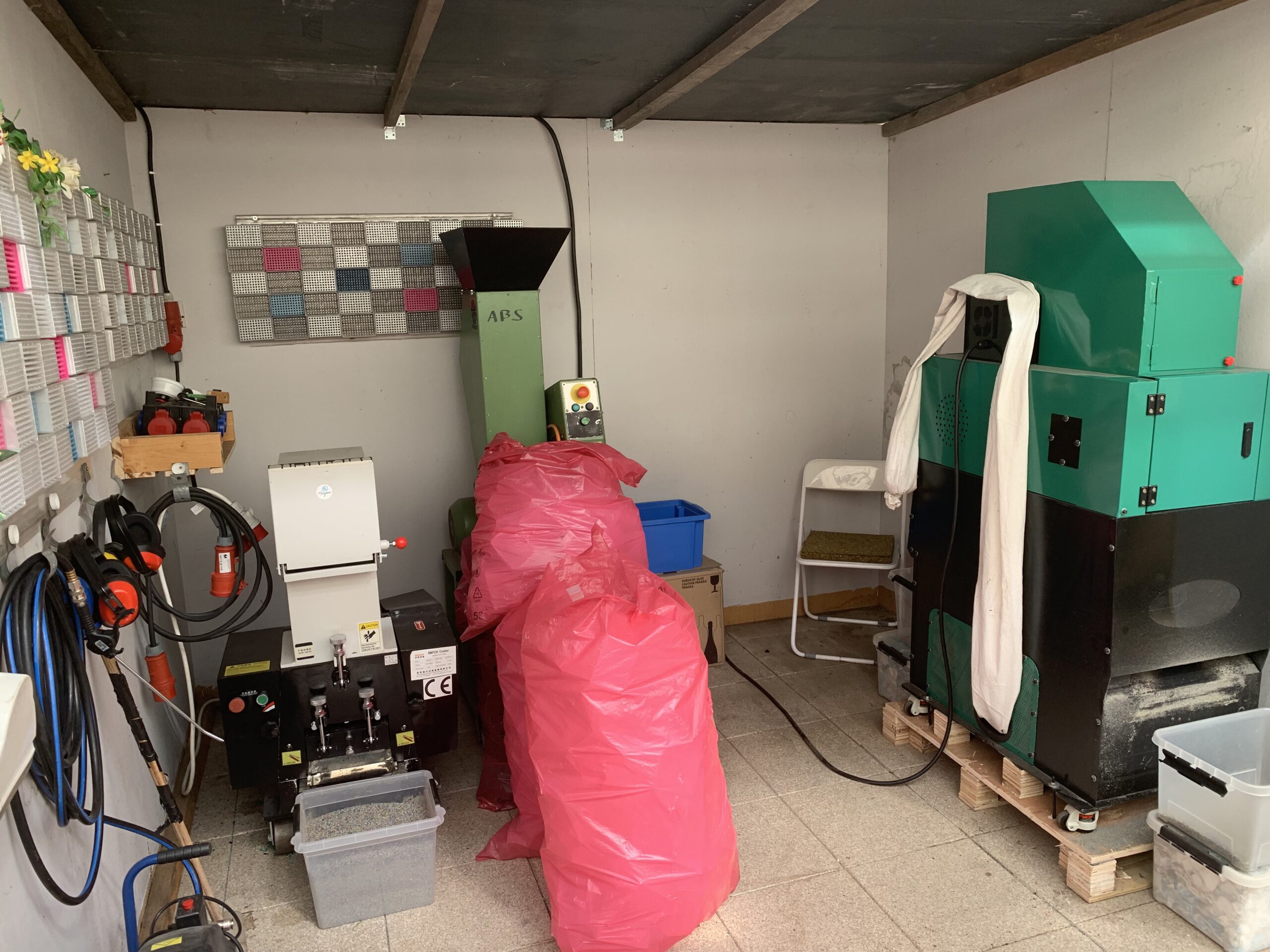 Das Herz unseres Vereins ist unsere Recycling-Werkstatt in Berlin-Britz. Hier betreiben wir eine Vielzahl von Maschinen und Werkzeugen, die den gesamten Recyclingprozess abdecken – vom Schreddern des gesammelten Plastiks bis zur Herstellung neuer, langlebiger Produkte. Unsere Werkstatt ist ein Ort des Lernens, Experimentierens und Schaffens.